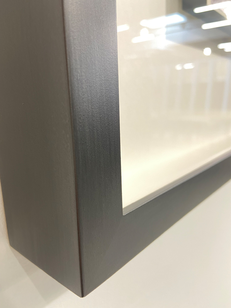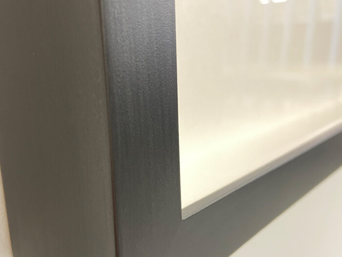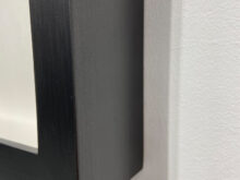 Floater frames, with prints mounted on honeycomb panels, edges covered with aluminium. Wooden frames with handmade Graphite finish, each frame took more than 20 hours of painting.