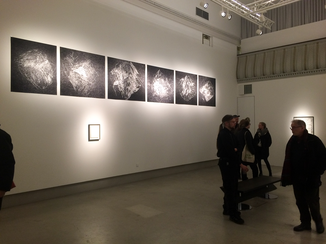 Custom framing for Jaana Maijala originals. Attaching 20 sheets of paper to the same frame and conversation framing for drawings attached to a background of a drawing.